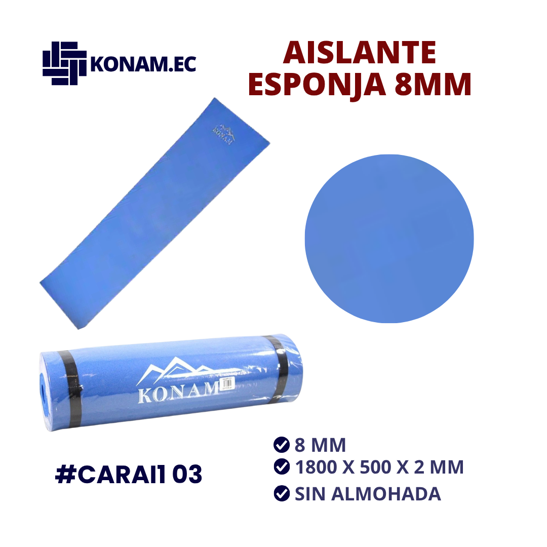 El aislante de frío y humedad KONAM está diseñado para brindar confort, protección y estabilidad en cualquier actividad al aire libre. Su estructura liviana y resistente reduce la pérdida de calor corporal y bloquea eficazmente la humedad del suelo, asegurando un descanso cómodo y seguro. Fabricado en color azul eléctrico, es práctico, duradero y fácil de transportar gracias a su peso aproximado de 250 g. Dimensiones: 180 cm x 50 cm x 8 mm de espesor.
