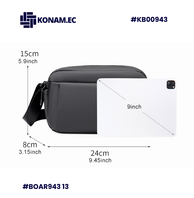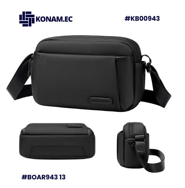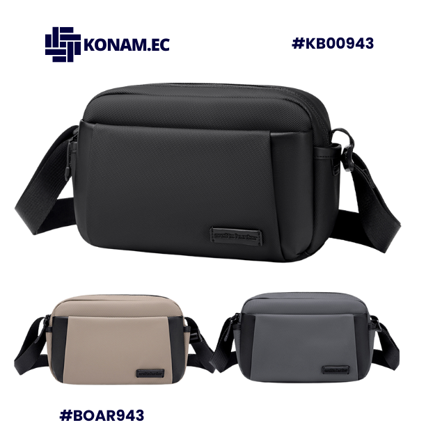 Bolso ARCTIC HUNTER #KB00943 compacta y funcional, ideal para uso diario. Fabricada en poliéster repelente al agua y resistente a rayones, cuenta con múltiples bolsillos, cierre personalizado de deslizamiento suave y gancho porta llaves removibles. Presenta una capacidad de 2.8 L, dimensiones de 15 × 8 × 24 cm aprox. y peso de 0.33 kg aprox., en colores negro, khaki y gris. No compatible con iPad o tablets.