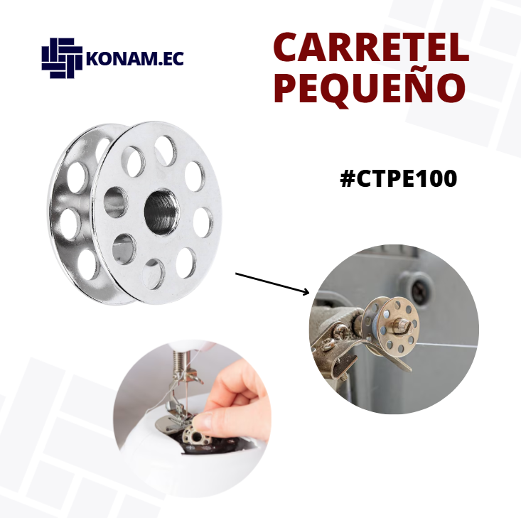 Carretel pequeño, diseñado para almacenar el hilo inferior que se alimenta a la aguja desde abajo, trabajando en conjunto con el hilo superior del carrete principal para lograr una costura correcta y uniforme.