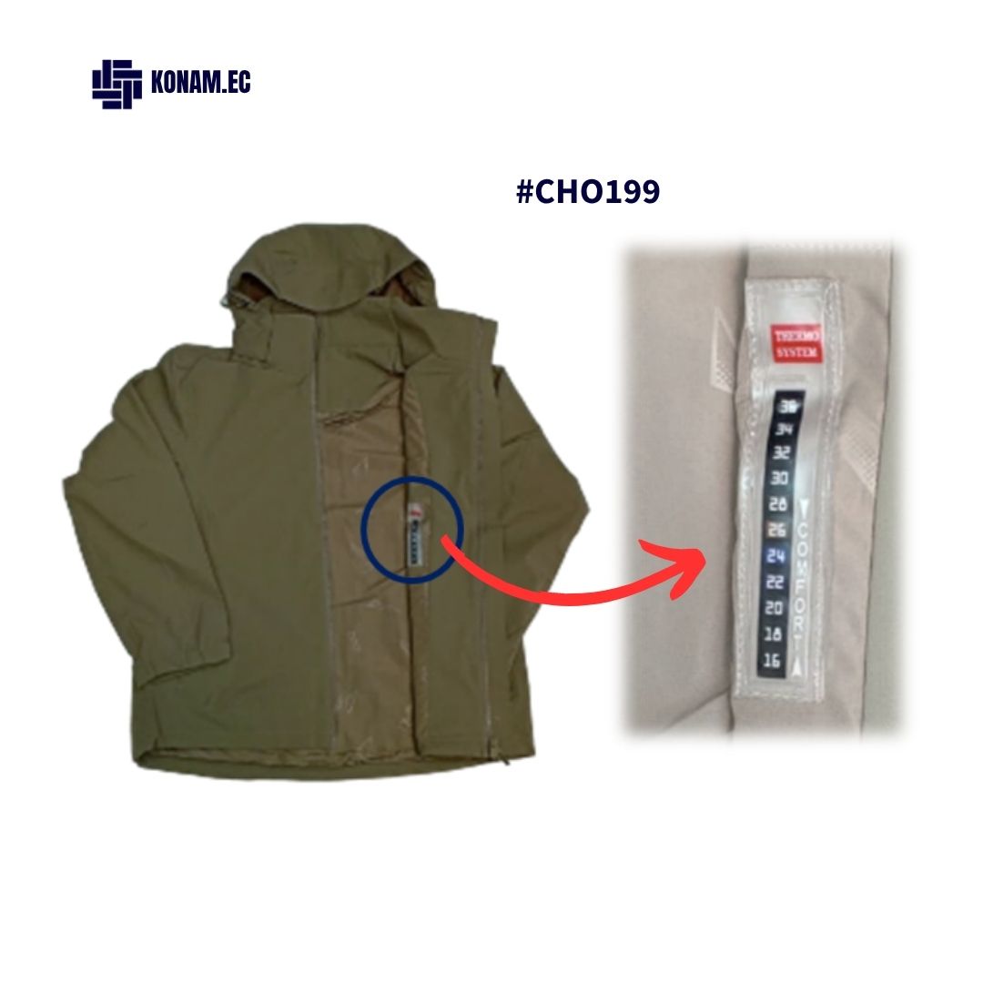 La característica principal de esta chompa es su «Thermo System» lo que indica que incorpora tecnología para el control de la temperatura. En el interior de la chaqueta tiene un indicador de temperatura que muestra un rango de «CONFORT» que va desde los 16°C hasta los 34°C. La chompa está diseñada para mantener al usuario cómodo dentro de ese rango de temperaturas, adaptándose a diferentes condiciones climáticas.