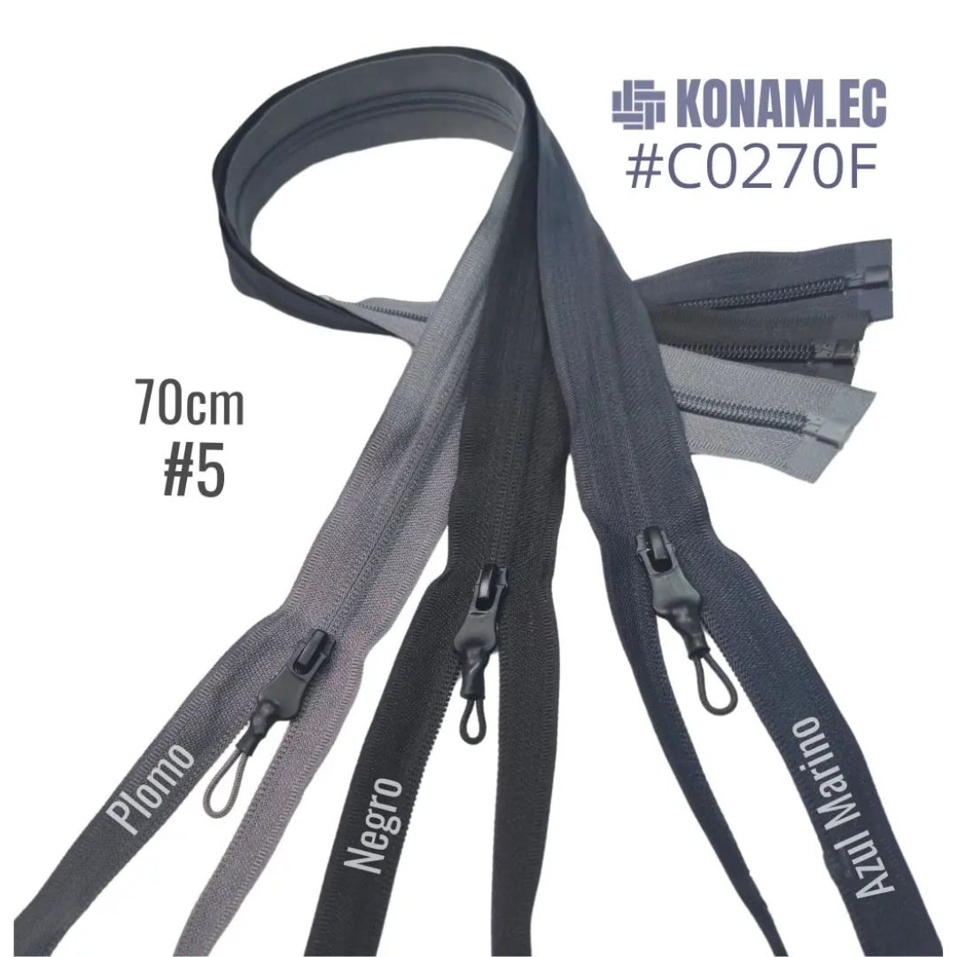Cierres Chompa Nylon Invisible importados por Grupo Konam, disponibles al por mayor y menor en azul marino, negro y plomo. Perfectos para usar en la confección de bolsillos para chompas y prendas delicadas de acabado fino.