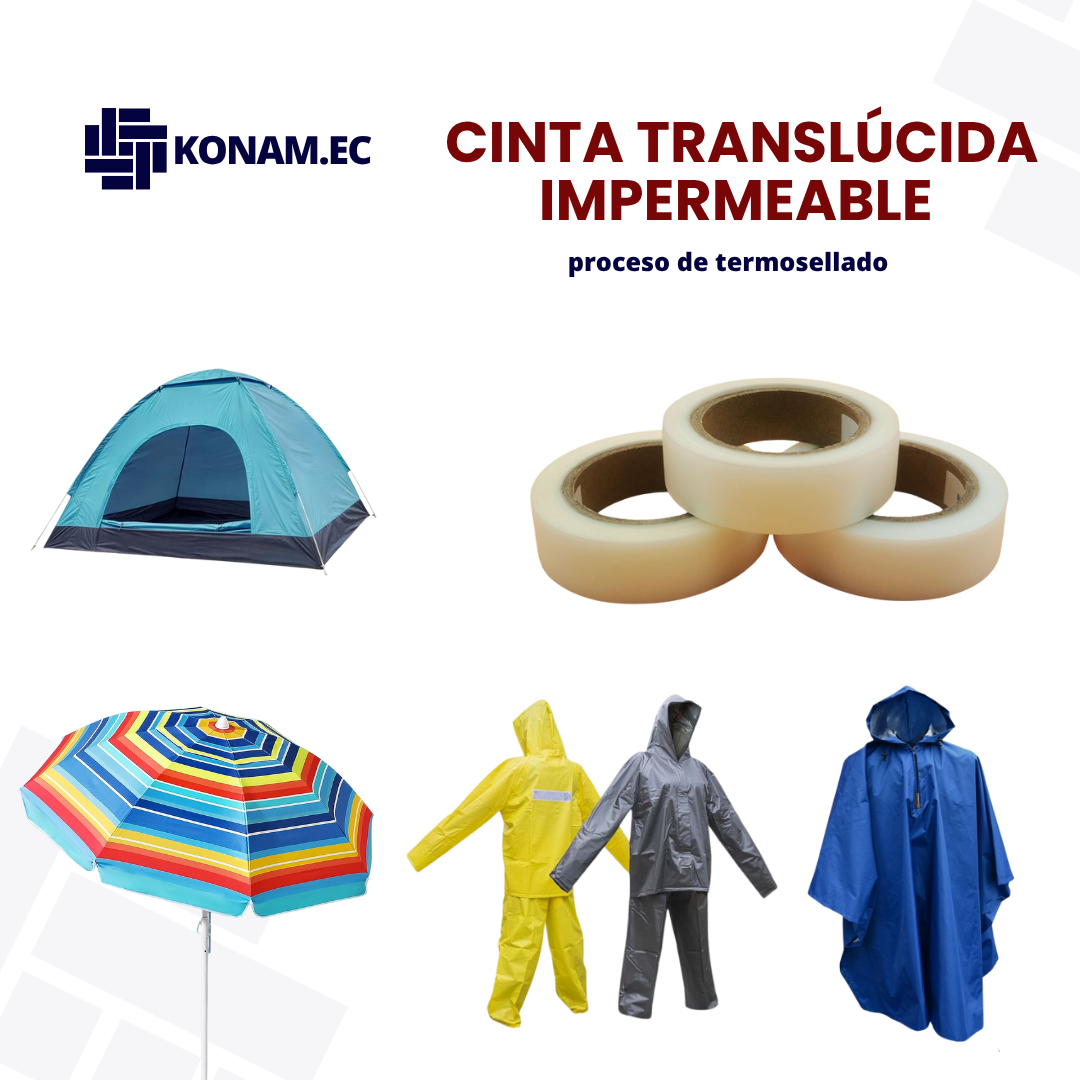 La cinta translúcida impermeable es un material especializado utilizado para sellar las uniones de telas plásticas o recubiertas en prendas impermeables. Su función principal es evitar filtraciones de agua o humedad en las costuras, garantizando una mayor durabilidad y resistencia del producto final. Fabricada con materiales de alta calidad, ofrece una excelente adherencia, flexibilidad y acabado limpio al aplicarse con calor o presión.