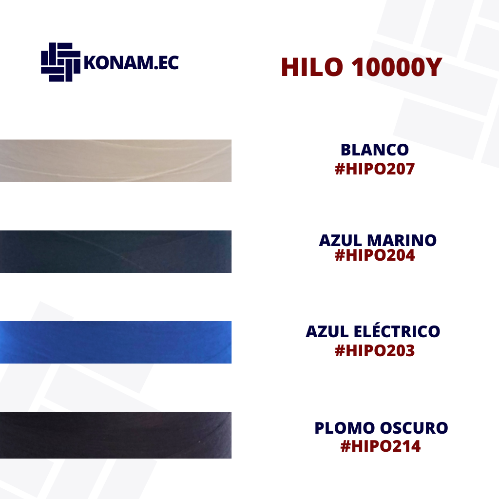 Hilo de 100% Poliéster de 10,000 yardas #HIPO2 en varios colores, al por mayor y menor, es de alta resistencia para confección manual o a maquina de todo tipo de prendas.