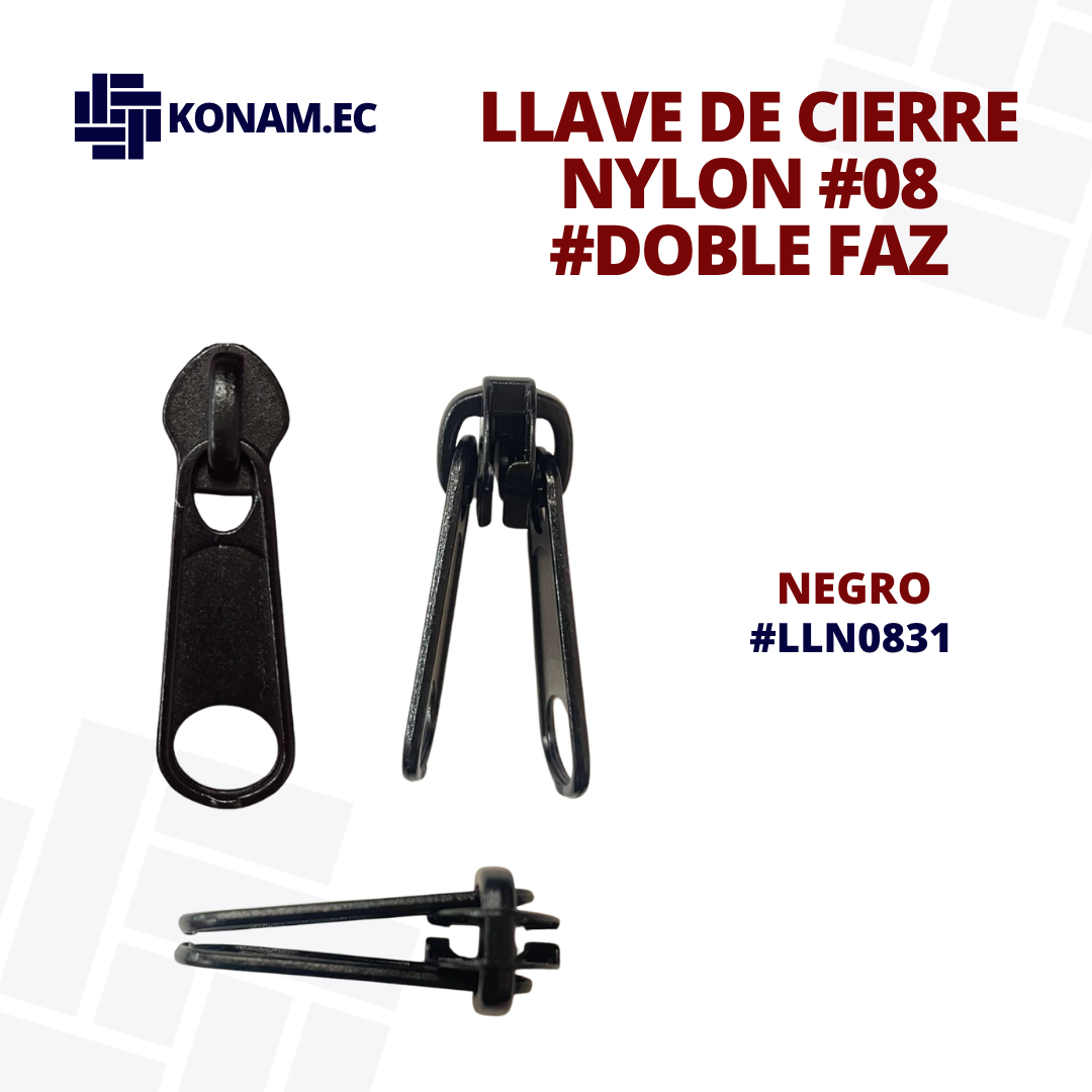 Llave de cierre Nylon #08 modelo Doble Faz , resistente y de excelente acabado, diseñada para brindar un deslizamiento suave y seguro en todo tipo de cierres. Su fabricación de calidad garantiza durabilidad y buen rendimiento en diferentes confecciones.