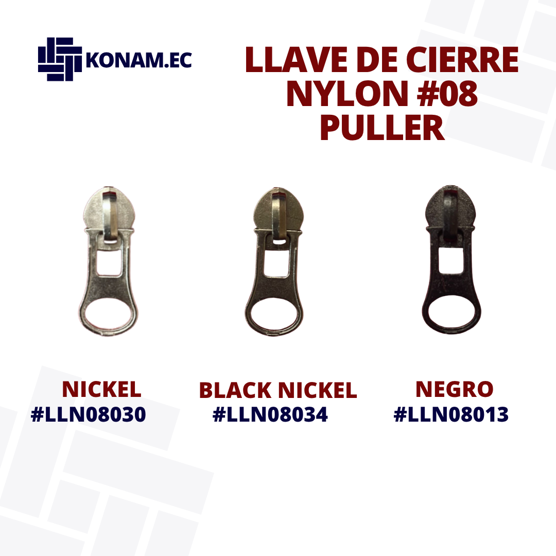 Llave de cierre Nylon #08 modelo PULLER , resistente y de excelente acabado, diseñada para brindar un deslizamiento suave y seguro en todo tipo de cierres. Su fabricación de calidad garantiza durabilidad y buen rendimiento en diferentes confecciones.