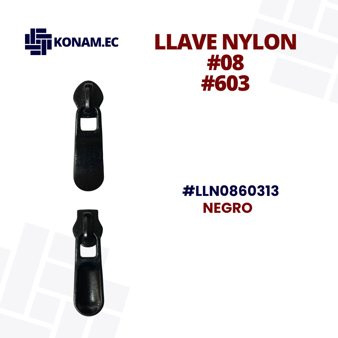Llave Nylon #08 resistente y decorativa, ideal para brindar un toque especial a todo tipo de cierres. Fabricada con excelente acabado que garantiza deslizamiento suave, durabilidad y estilo en tus confecciones.