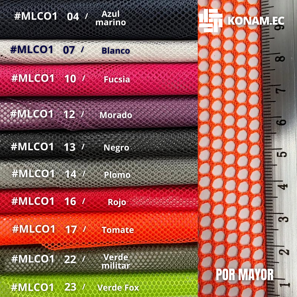 La Malla Coreana 100Y está fabricada en 100% poliéster y presenta una estructura resistente, ventilada y flexible, ideal para aplicaciones que requieren soporte, comodidad y durabilidad. Su diseño permite una adecuada circulación de aire, mejorando el confort en zonas de contacto continuo.