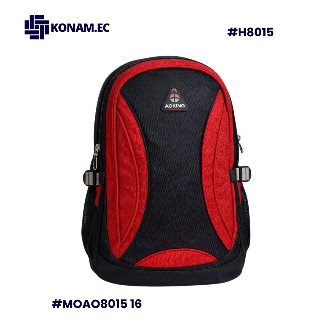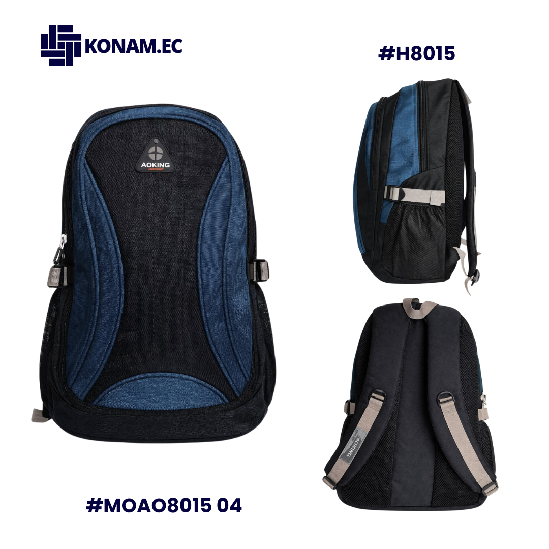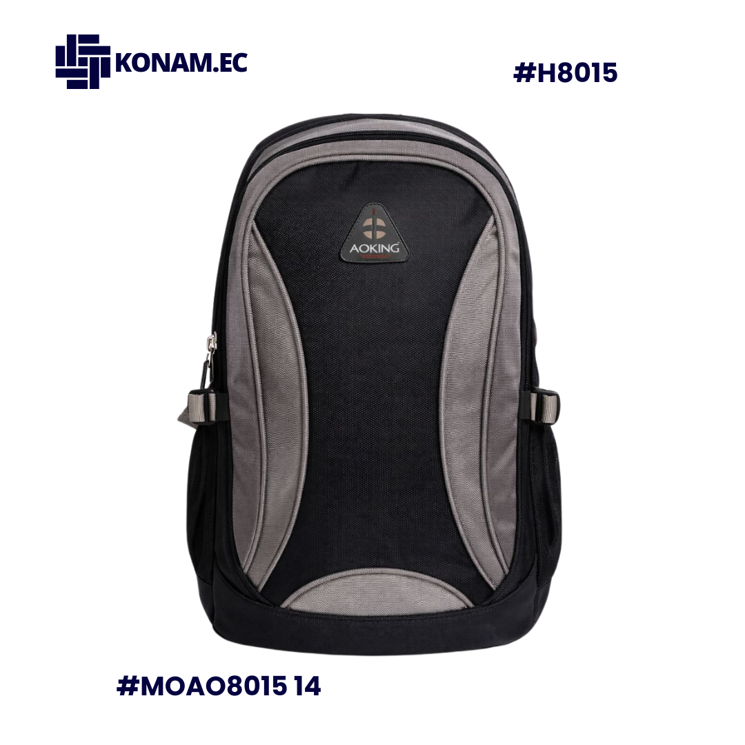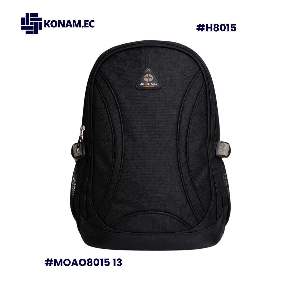 Mochila Aoking disponible en varios colores, fabricada en poliéster resistente y ligera, ideal para mantener tus pertenencias organizadas en cualquier actividad. Su diseño funcional incluye dos compartimentos externos, un bolsillo interno con cierre, varios bolsillos internos abiertos y dos bolsillos laterales de malla para botellas u objetos de acceso rápido. El espaldar acolchado y transpirable proporciona comodidad durante todo el día.
