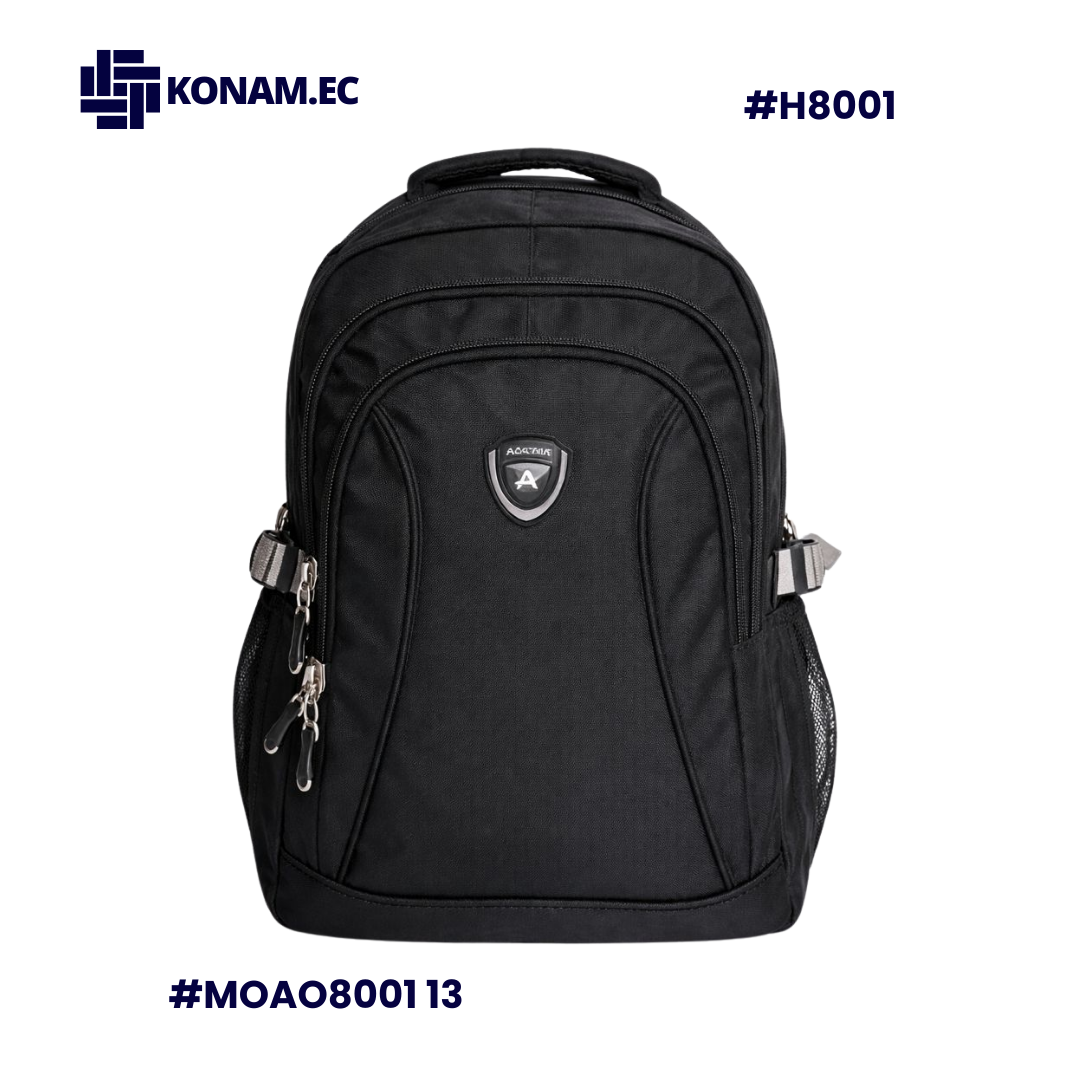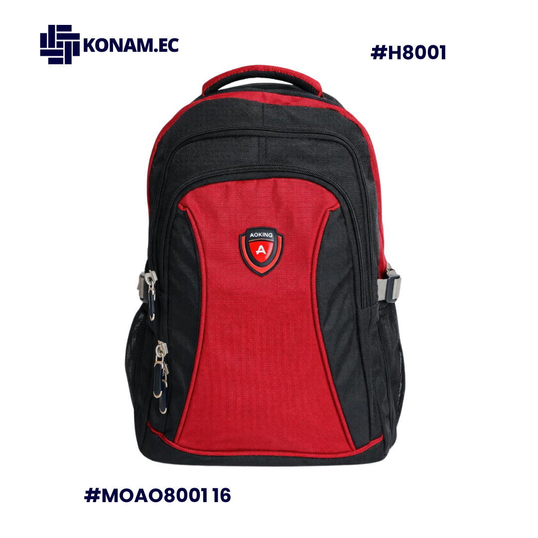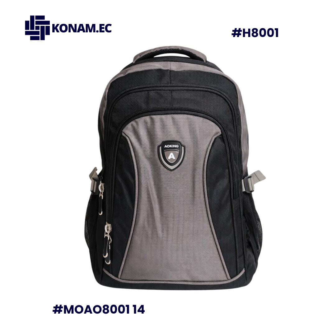 Mochila importada Aoking Serie H8001, de gran capacidad y diseño ergonómico que garantiza comodidad y funcionalidad. Fabricada con poliéster tipo lona o cordura impermeable en la parte externa y forro interno 100% poliéster, ofrece resistencia y durabilidad en todo entorno. Cuenta con llaves bidireccionales de nailon y bolsillos laterales de malla ideales para botellas o accesorios. Sus dimensiones son 48 x 32 x 18 cm, con ligeras variaciones por medición manual.