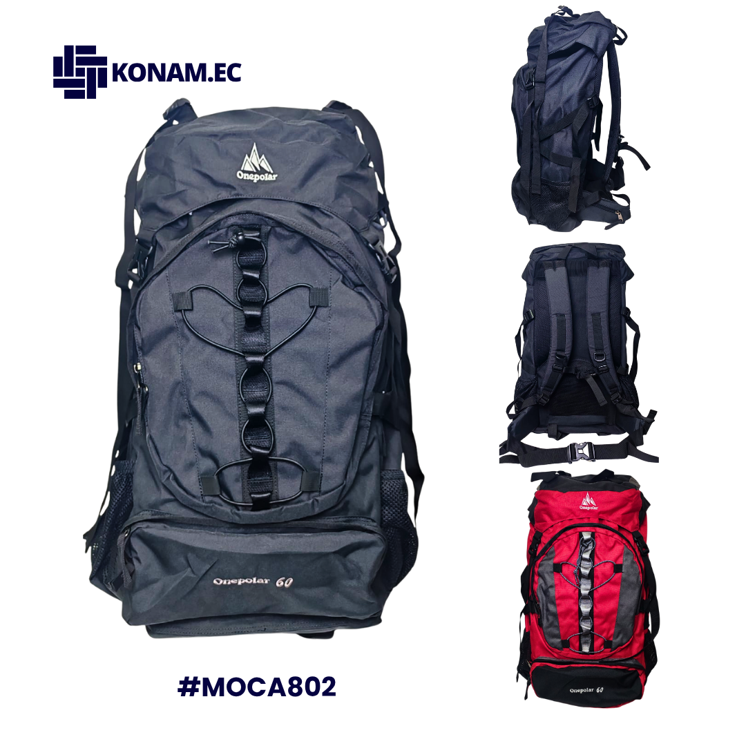 La Mochila Camping One Polar #802 de 60 litros es una opción profesional diseñada para aventuras exigentes. Su amplia capacidad permite organizar equipo de forma eficiente gracias a sus múltiples bolsillos y compartimientos, mientras que su estructura interna aporta firmeza y mantiene la forma incluso con carga completa. Incorpora tiras ajustables que mejoran la estabilidad y ofrecen un ajuste cómodo y seguro. El espaldar con sistema de respiración optimiza la ventilación, reduciendo la humedad y aumentando el confort en caminatas prolongadas. Su diseño práctico y funcional la convierte en una herramienta confiable para actividades intensivas al aire libre.