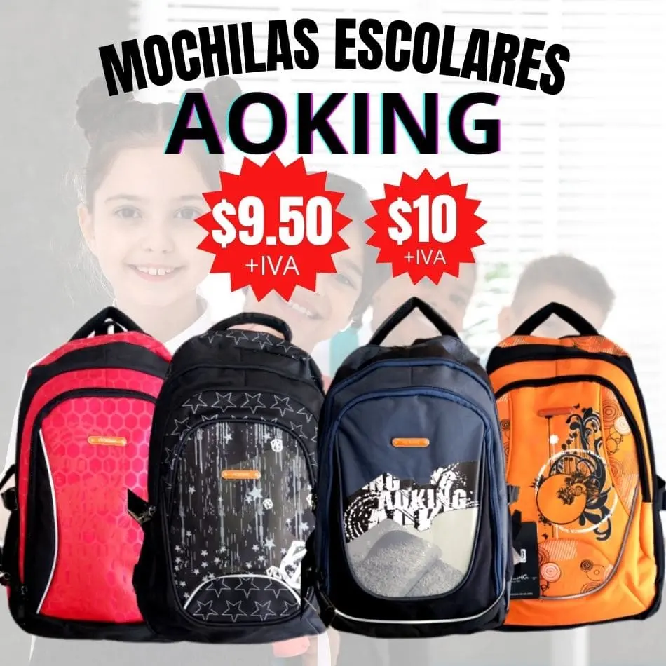 Mochilas en oferta al 50% de descuento a solo $9.50 y $10, material resistente al agua, espaldar acolchado, circulación de aire, bolsillo lateral porta botella, bolsillo porta carpeta, bolsillo frontal y organizadoral