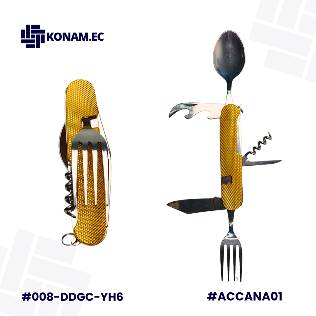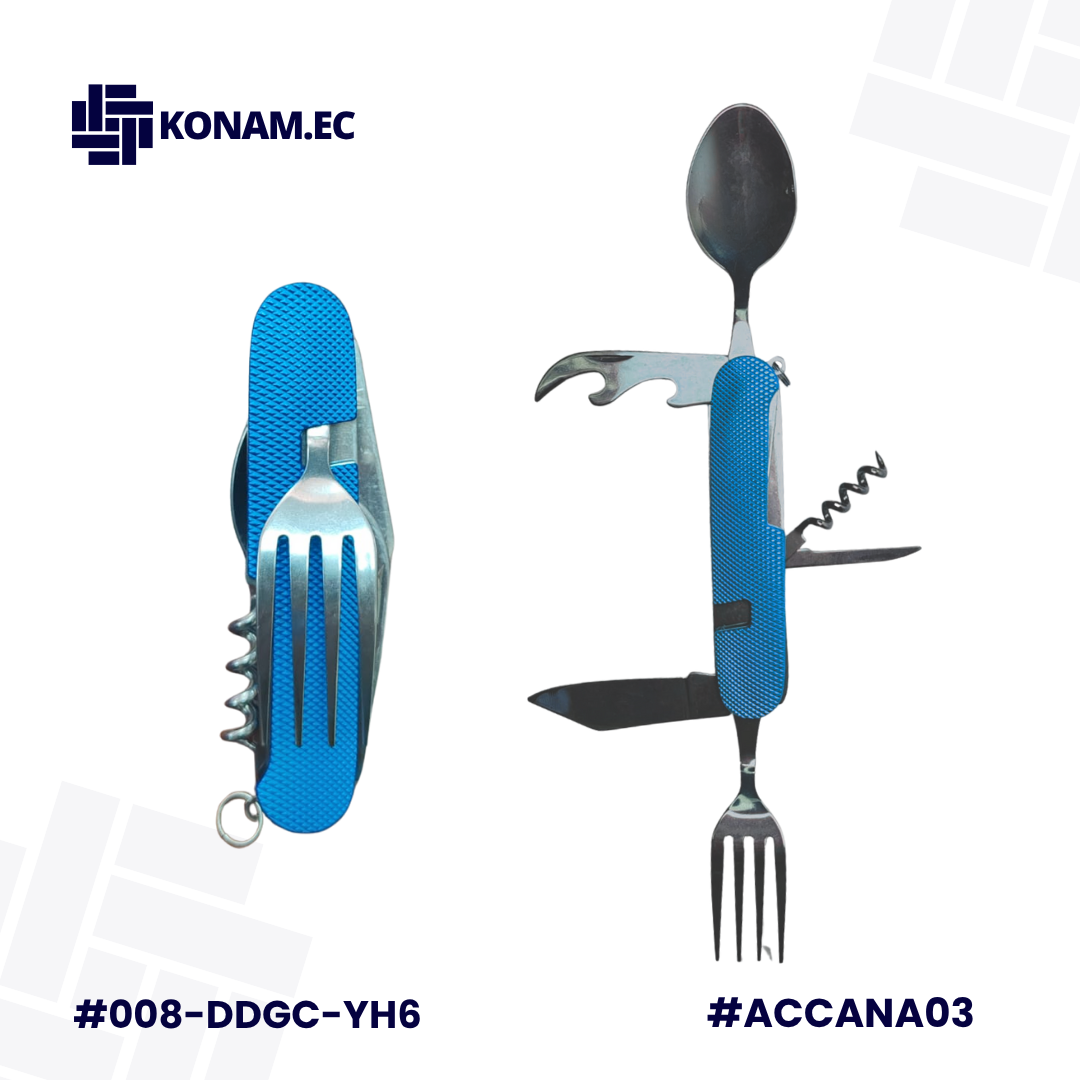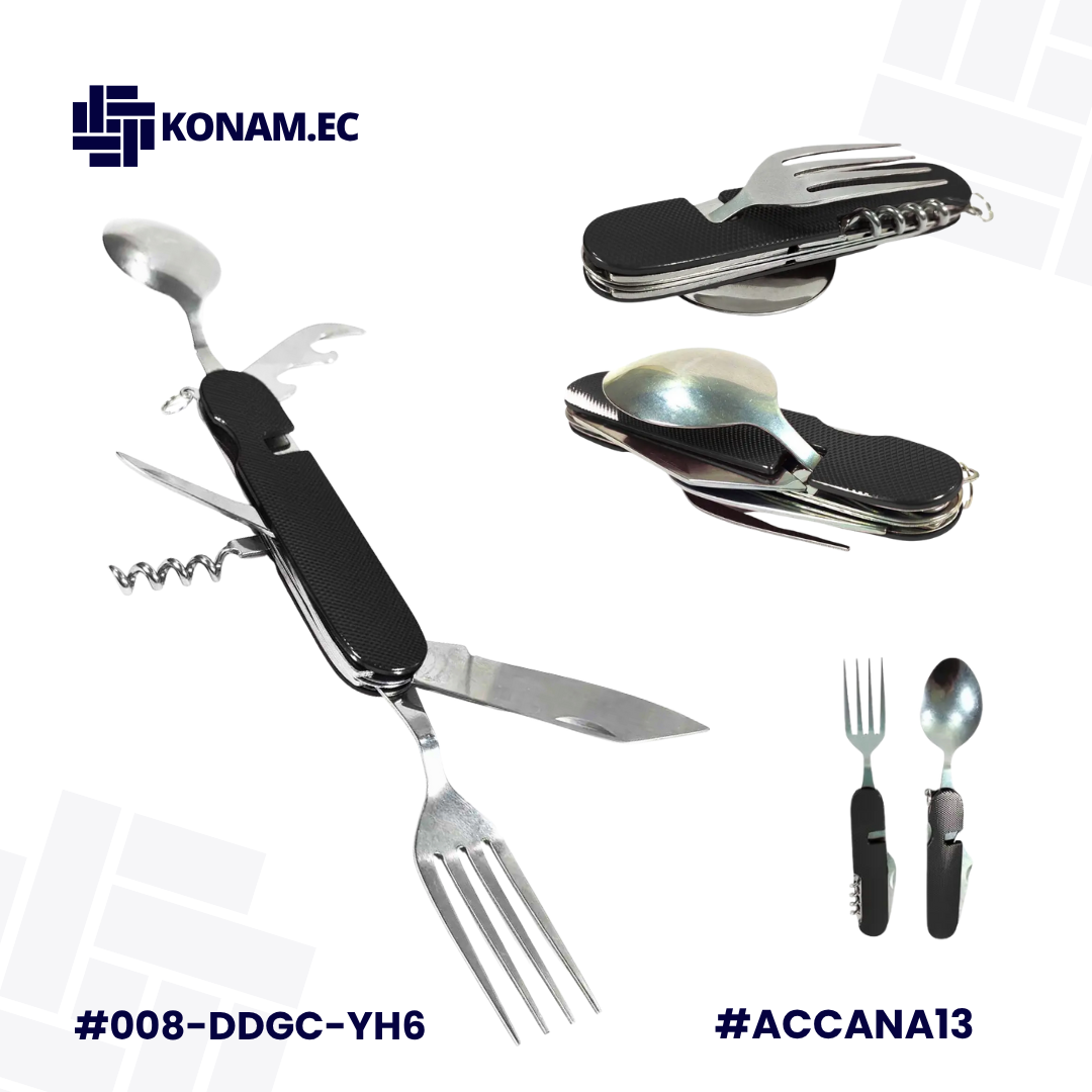 Usos: Perfecta para camping, pesca, caza, viajes y mochileros urbanos, ya que ofrece cubiertos reutilizables, abrelatas, abrebotellas y otras herramientas básicas en un solo utensilio compacto. Ideal para preparar y consumir alimentos durante excursiones, comidas rápidas o situaciones en las que se requiere practicidad y portabilidad.