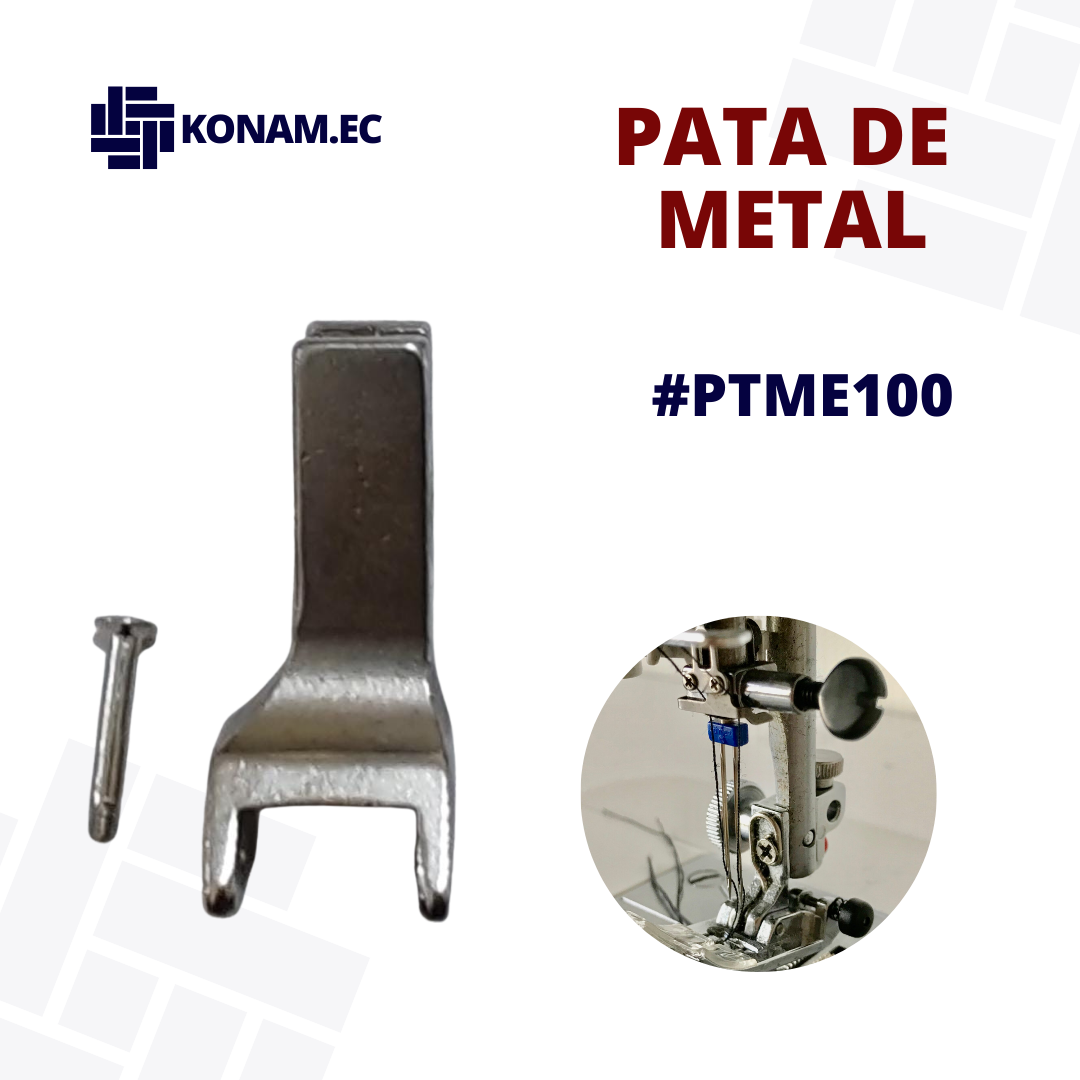 Pata de metal, resistente y firme, diseñada para facilitar una costura estable y uniforme, brindando mayor durabilidad y control durante el trabajo en máquina.