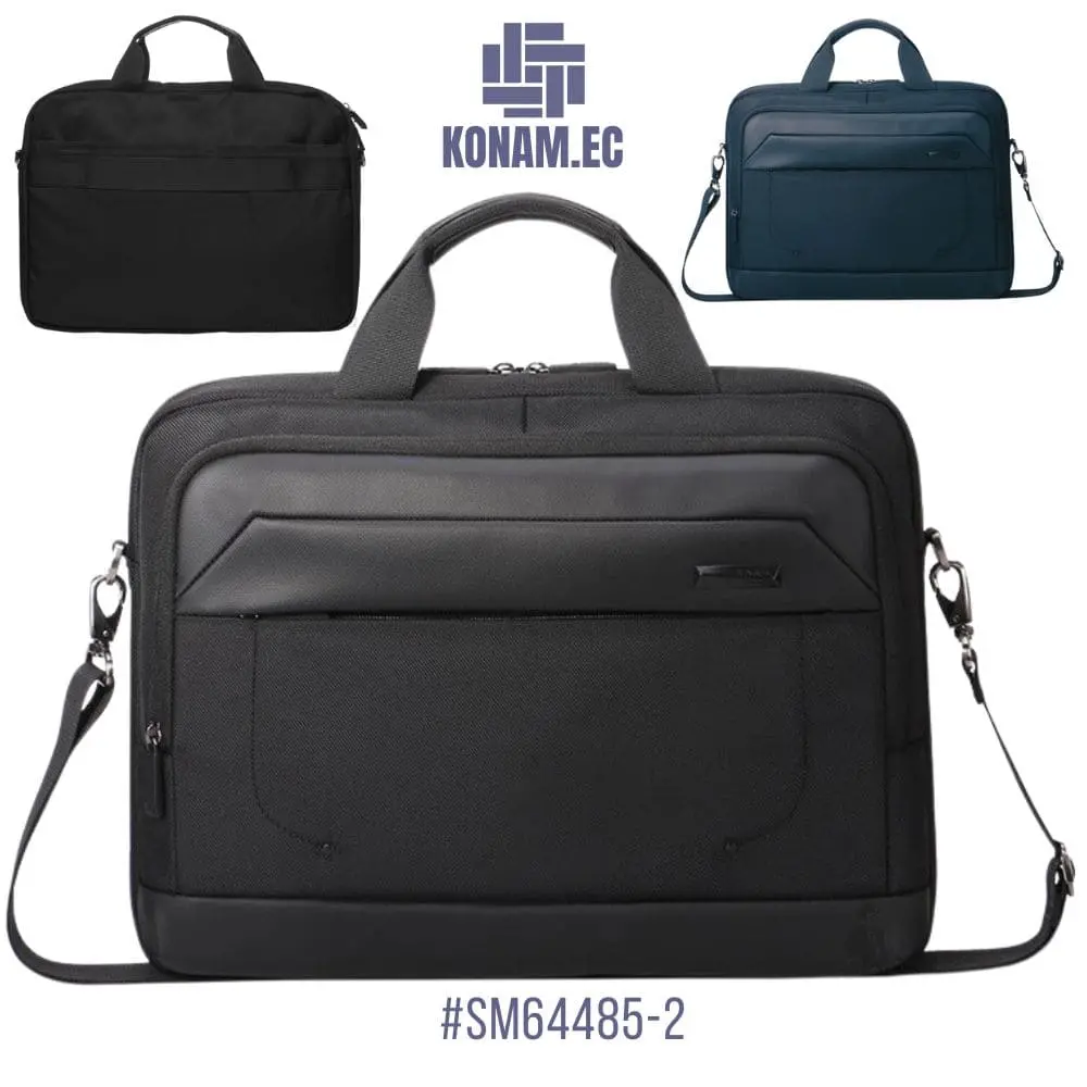 Portafolio AOKING #SM64485-2, elegante y moderno, ideal para oficina, estudio o viajes de negocios. Fabricado en poliéster 1680D de alta resistencia con revestimiento repelente al agua, ofrece durabilidad y protección. Cuenta con 4 compartimentos, bolsillo porta laptop de 15,6″, asa superior y correa de hombro extraíble para mayor comodidad. Disponible en color negro y azul marino.