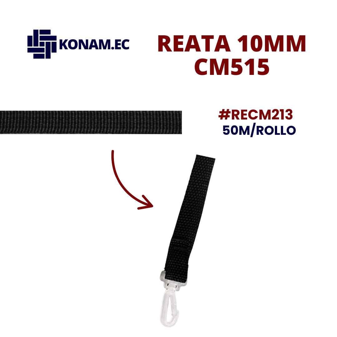 Reata importada de 10 mm aprox., presentación en rollo de 50 m aprox, elaborada con tejido resistente y uniforme, ideal para confecciones livianas que requieren firmeza, flexibilidad y buen acabado.