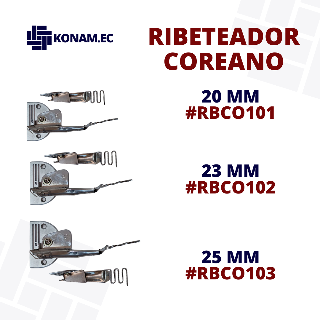 Ribeteador coreano, diseñado para ribetear y reforzar bordes de forma precisa y uniforme. Compatible con medidas 20 mm, 23 mm y 25 mm, ideal para lograr acabados firmes y profesionales.