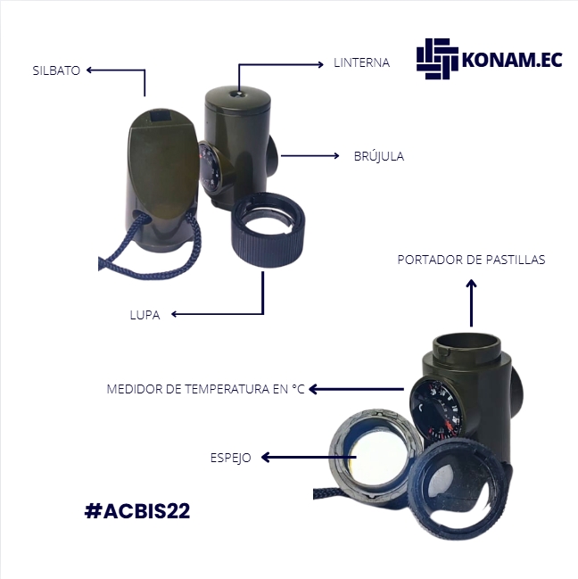 Usos: Ideal para camping, senderismo, montañismo, exploración al aire libre, kits de emergencia, actividades scouts, excursiones escolares, entrenamiento de rescate y como accesorio de seguridad personal durante viajes o actividades nocturnas.