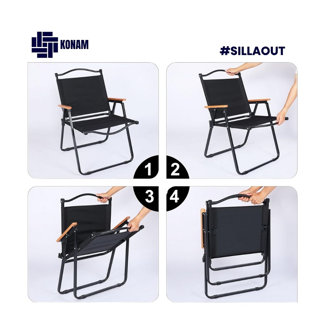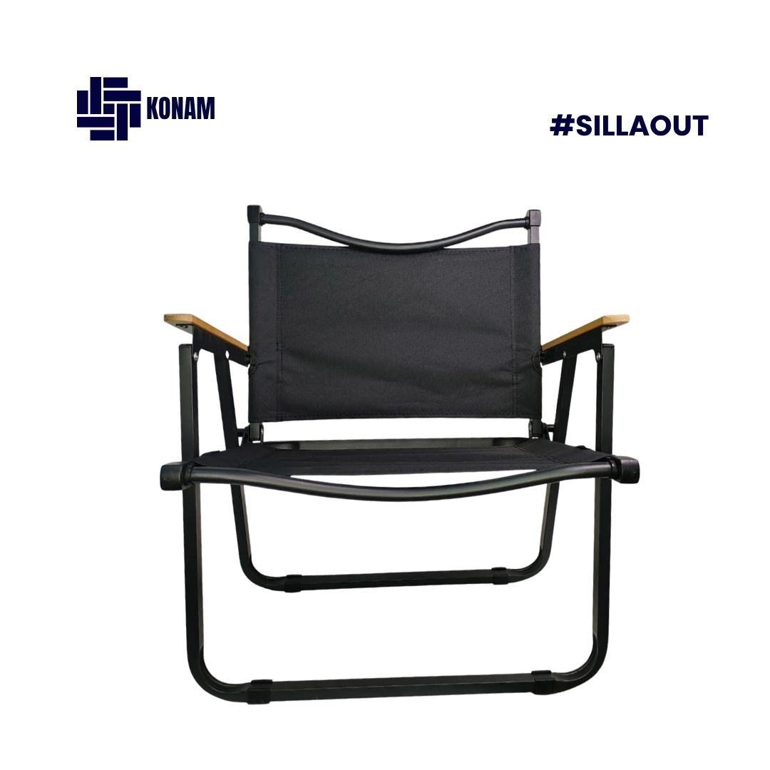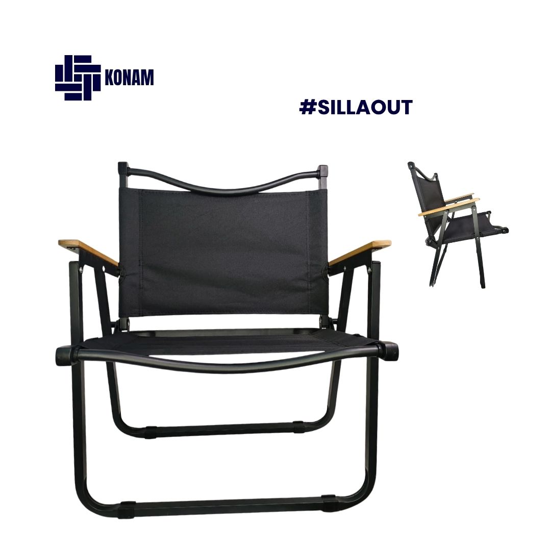 SILLA CAMPING PLEGABLE CON FILOS DE MADERA NEGRO #SILLAOUT