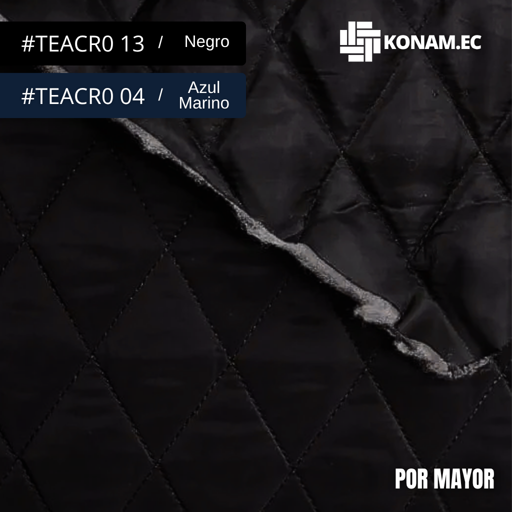 La Tela Acolchada 105G con diseño de rombos de 4.5 cm es un material ideal para prendas exteriores que combinan abrigo, estilo y protección. Fabricada en 100% poliéster y con acabado repelente al agua (W/R), ofrece una excelente retención de calor, suavidad y resistencia al uso diario. Su diseño acolchado en forma de rombos brinda un aspecto moderno y elegante, perfecto para confecciones de invierno o de moda casual.