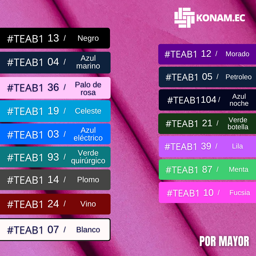 Ideal para confeccionar uniformes médicos, pantalones sanitarios, batas, pijamas quirúrgicas y ropa profesional. Su tecnología antifluido repele líquidos, mientras que su propiedad anticloro asegura mayor durabilidad y conservación del color, ofreciendo un rendimiento superior en ambientes exigentes.
