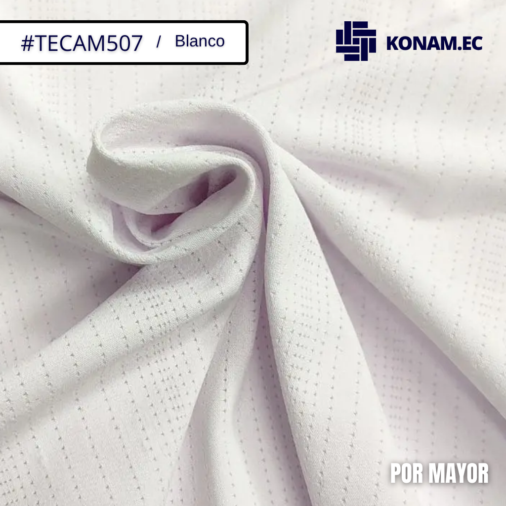 Tela camiseta checkered jacquar blanca de 160g, compuesta de 91% poliéster y 9% espandex al por mayor en Ecuador para ropa deportiva. Venta por rollos.