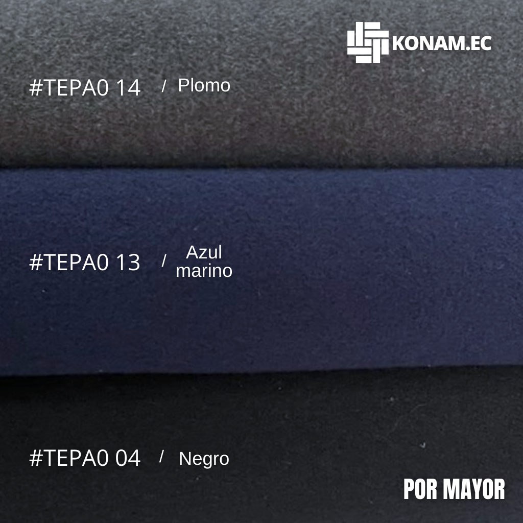 Tela de Paño de 370g, compuesta de 100% poliéster. Ofrece una textura suave, cálida y elegante, ideal para confecciones de invierno que requieren aislamiento térmico, buena estructura y un acabado formal o de moda.