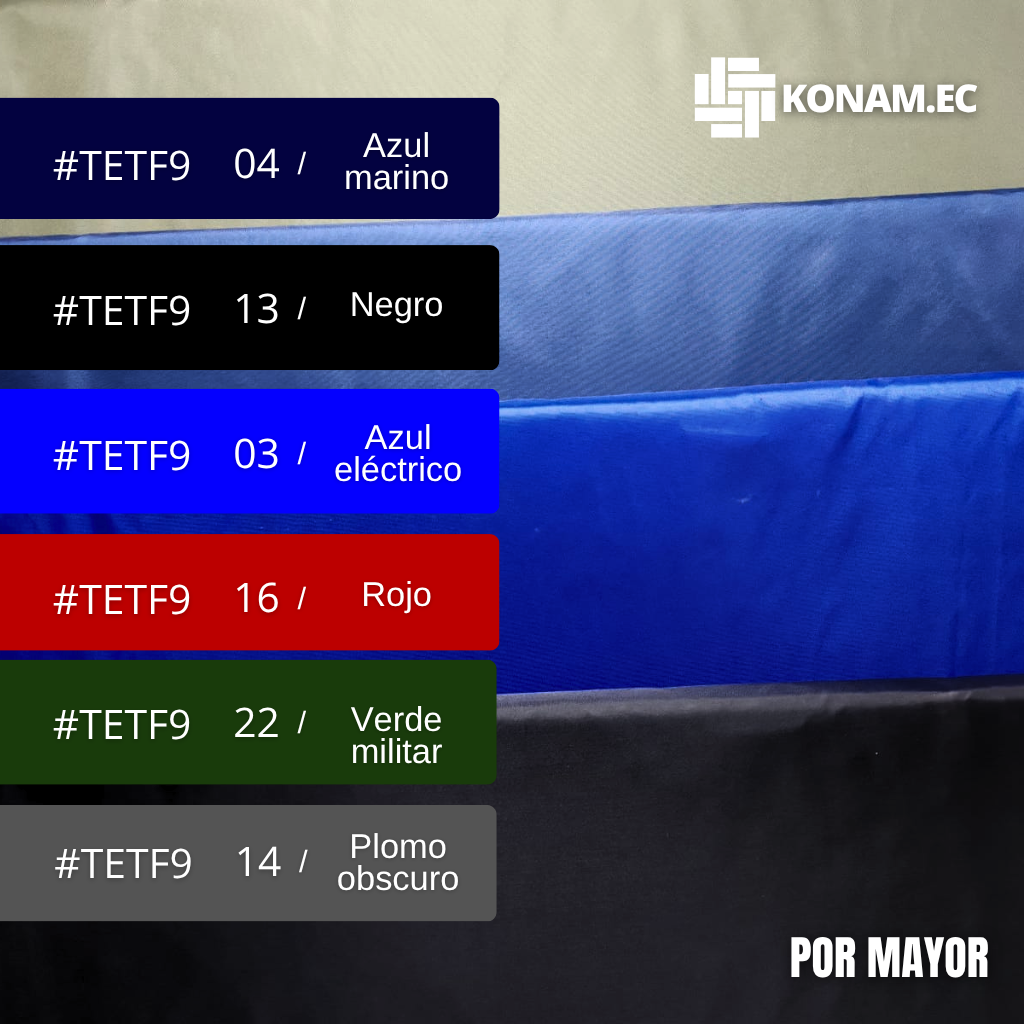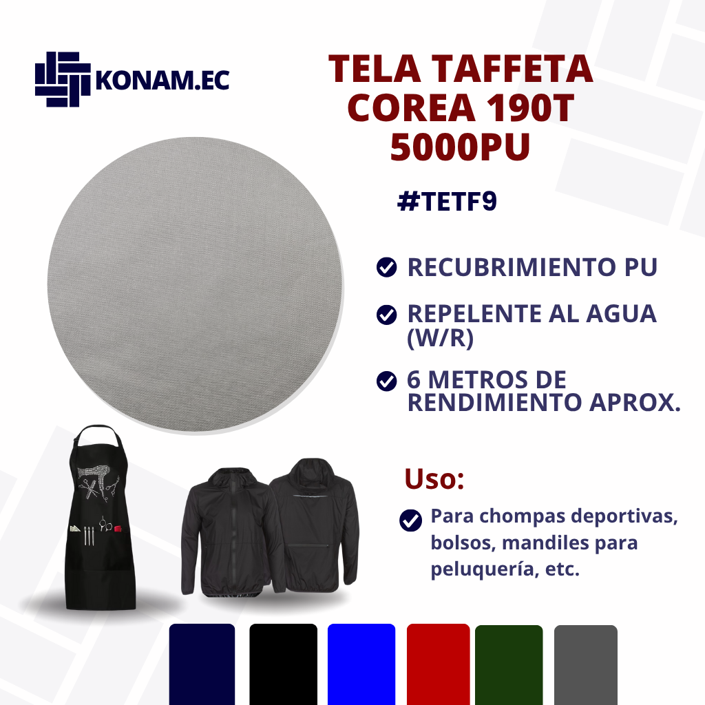Tela Taffeta Corea 190T 5000PU, resistente y repelente al agua, ideal para confeccionar prendas y accesorios duraderos con acabado profesional.